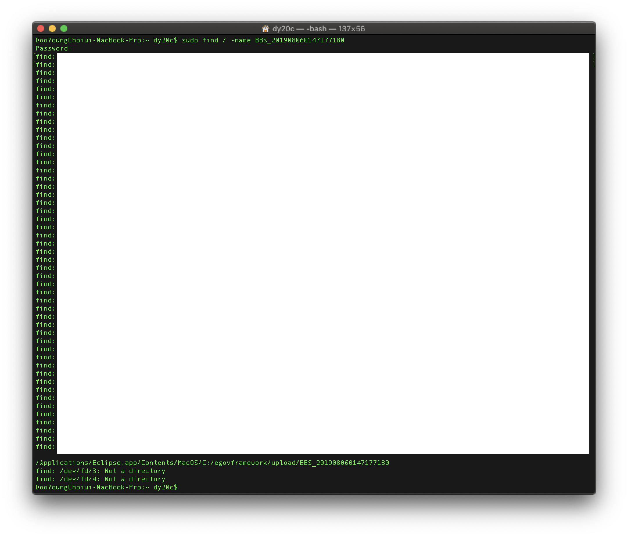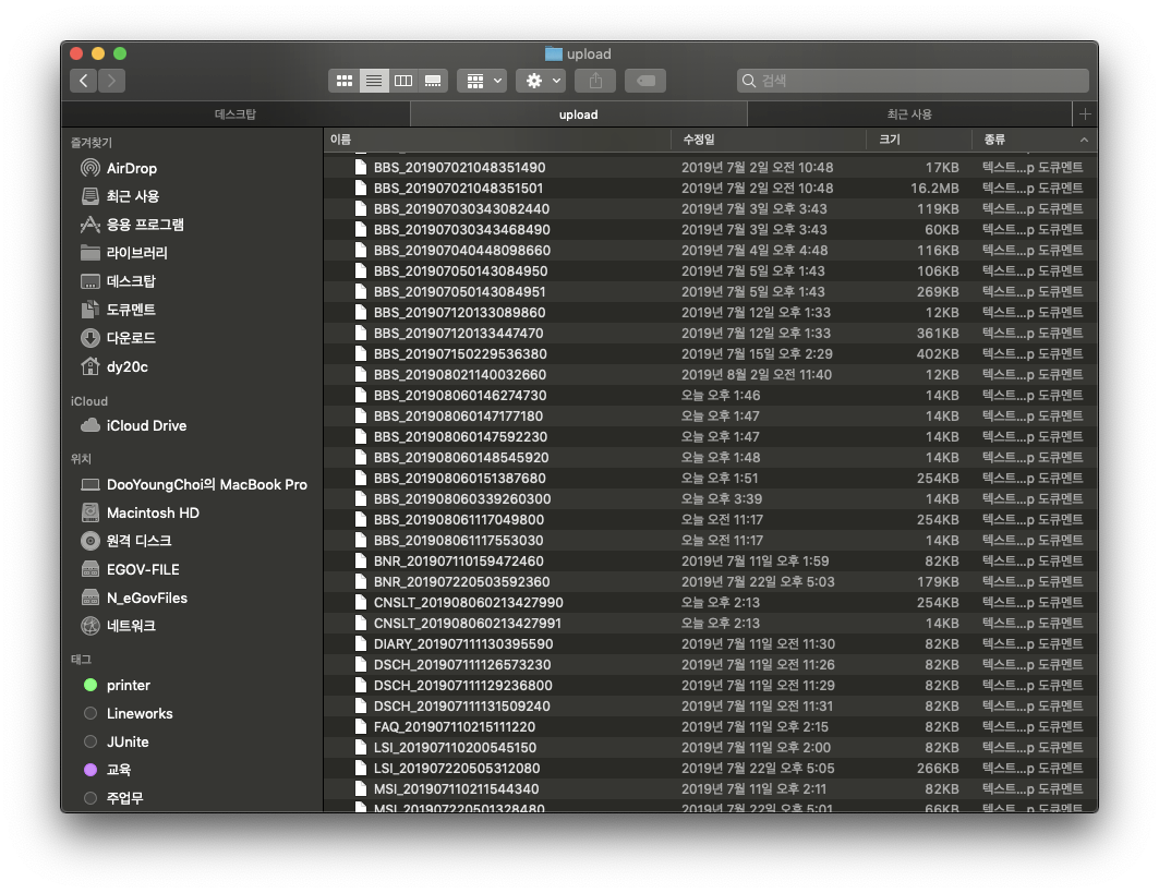맥(Mojave)으로 표준프레임워크 공통컴포넌트 3.8.0에서 게시판에 첨부파일을 업로드하다가, 업로드는 되는데 파일 위치를 찾을 수가 없었다.