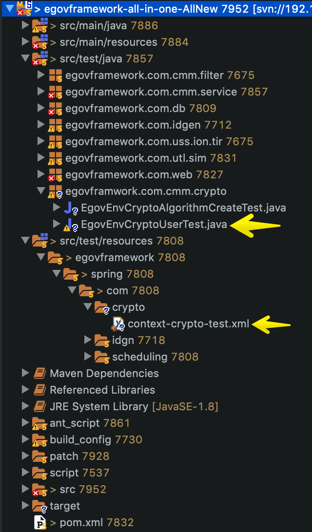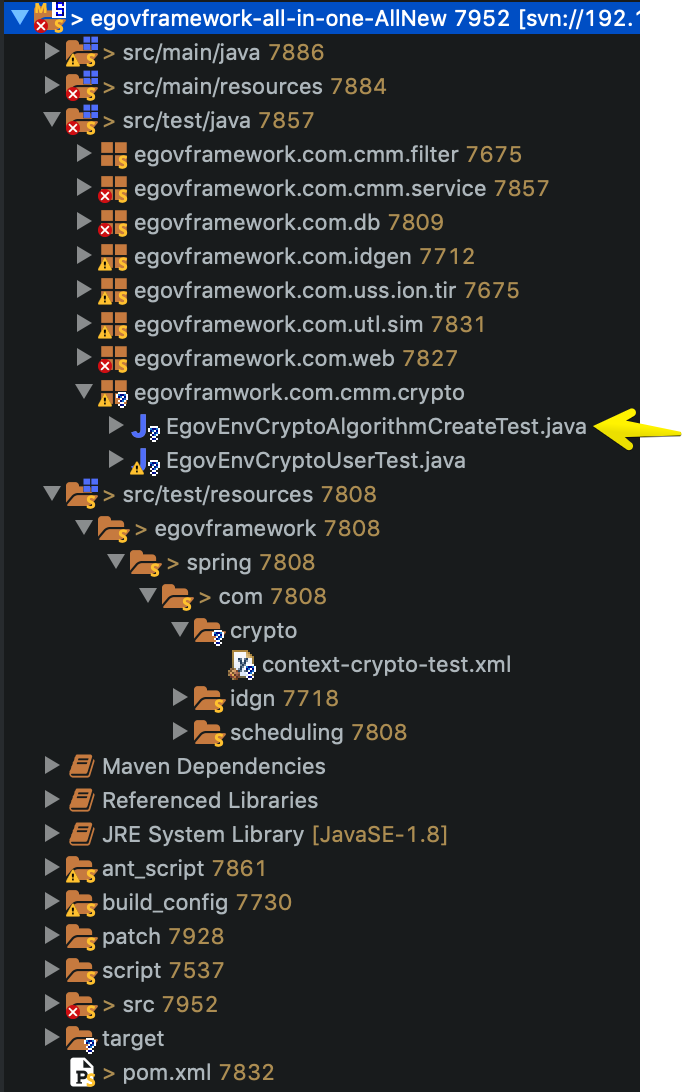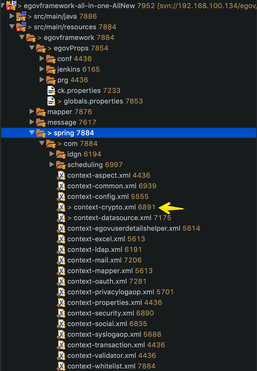 다음은 아래 노란 화살표의 파일을 엽니다. context-crypto.xml