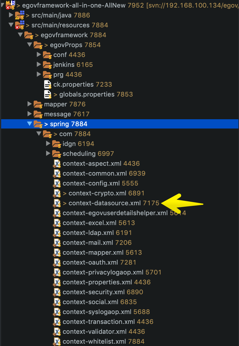 위와 같이 넣어준 후 datasource에서 decrypt를 해줍니다. context-datasource.xml로 갑니다.