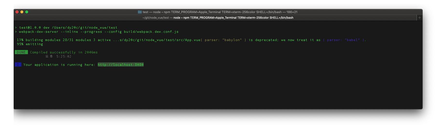 //webpack 모듈 번들러를 사용하는 Vue.js 프로젝트 다음 명령으로 생성 가능(test는 프로젝트 이름)